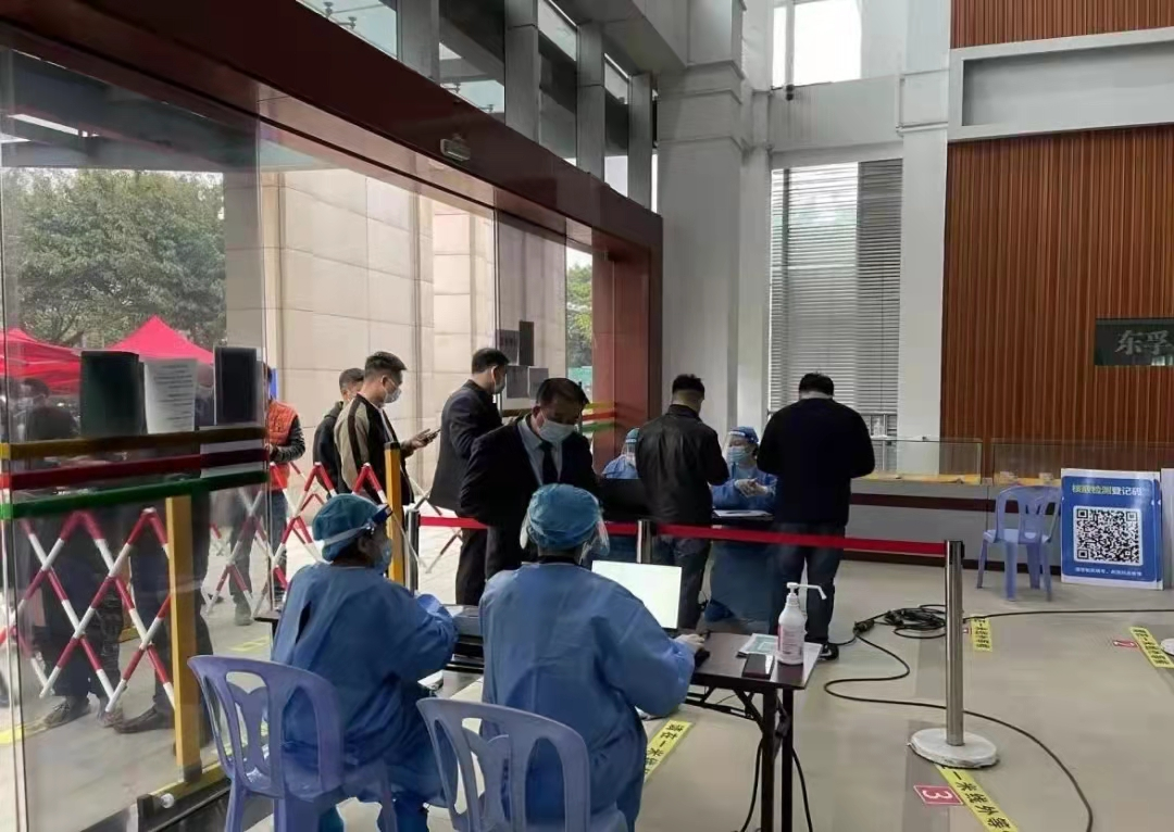 (陈婕妤(左一)为社区居民进行疫情防控核酸检测预登记)