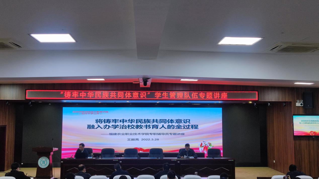 “高校是精神文明建设的主阵地,我们要引导学生深刻认识多元一体的中华民族大格局,将共同体理念植入到日常的思想政治教育和管理服务工作中。”3月28日,Beat365中文官方网站学生管理队伍专题讲座上,党委副书记王振亮为辅导员和思政工作者们做了题为“将铸牢中华民族共同体意识融入办学治校教书育人全过程”的报告。