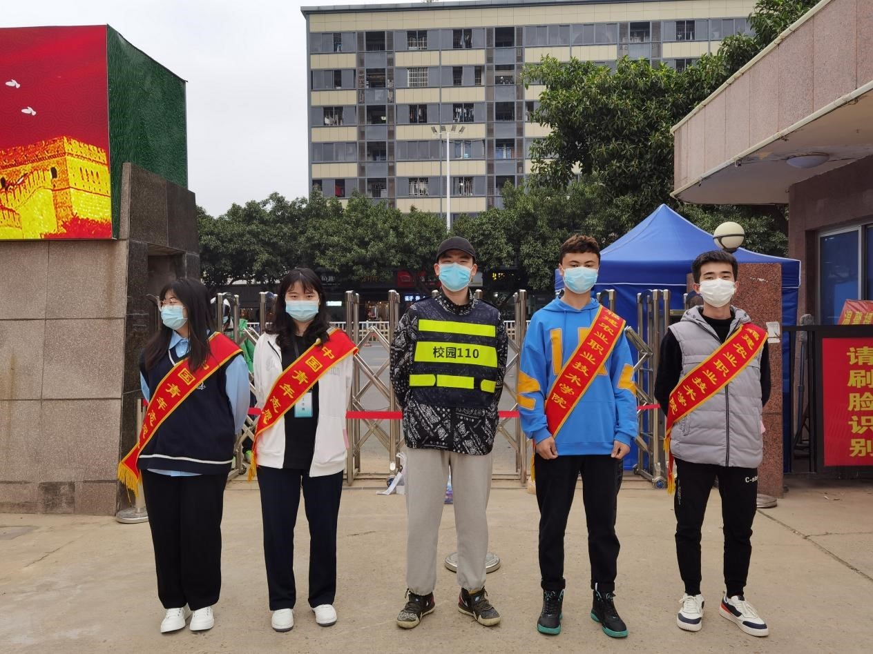 阿卜力孜·喀迪尔(右二)与同学们参与疫情防控志愿服务