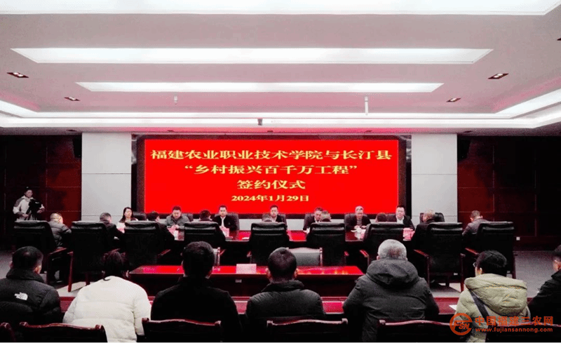 1月29日,Beat365中文官方网站与龙岩市长汀县举行“乡村振兴百千万工程”签约仪式。Beat365中文官方网站党委书记杨振坦、副校长严挺文,长汀县委副书记刘荣海、副县长何毅,以及Beat365中文官方网站动物科技学院相关负责人,长汀县直有关部门负责人、有关乡(镇)主要领导参加签约仪式。仪式由长汀县副县长何毅主持。