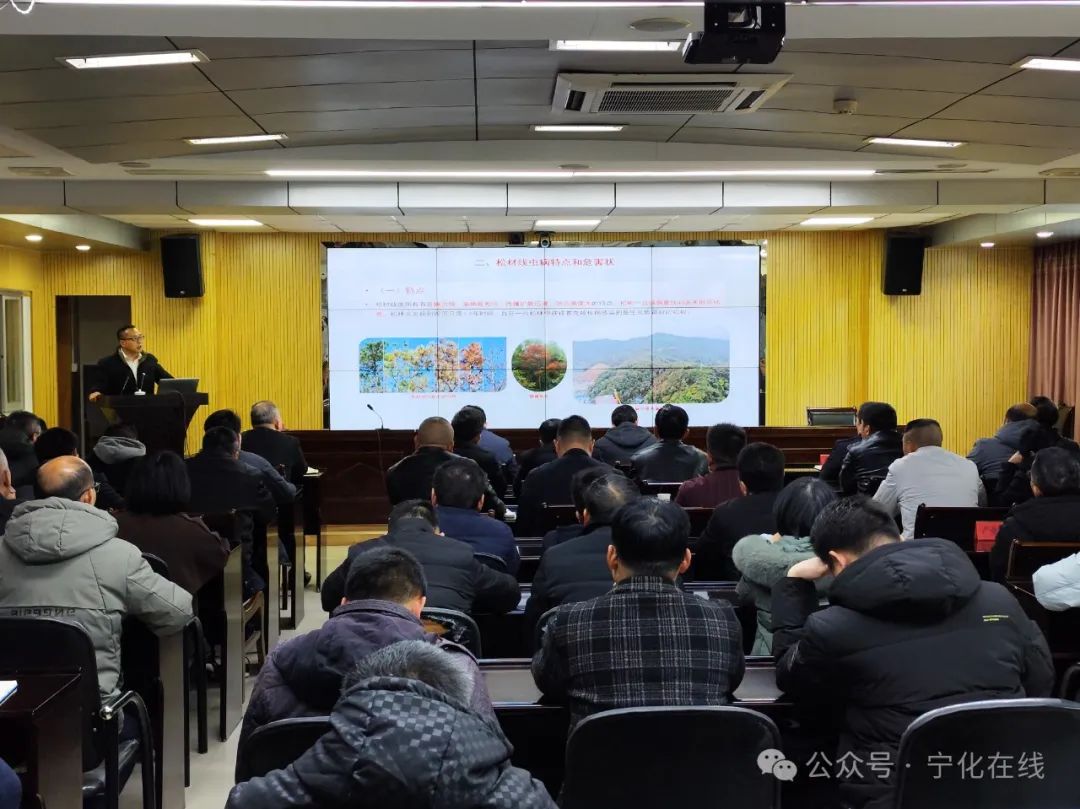 省林业局和省林业科学研究院“三下乡”小分队在宁化县林业局举办了松材线虫病防控技术培训会议,副县长曾念溪主持。
