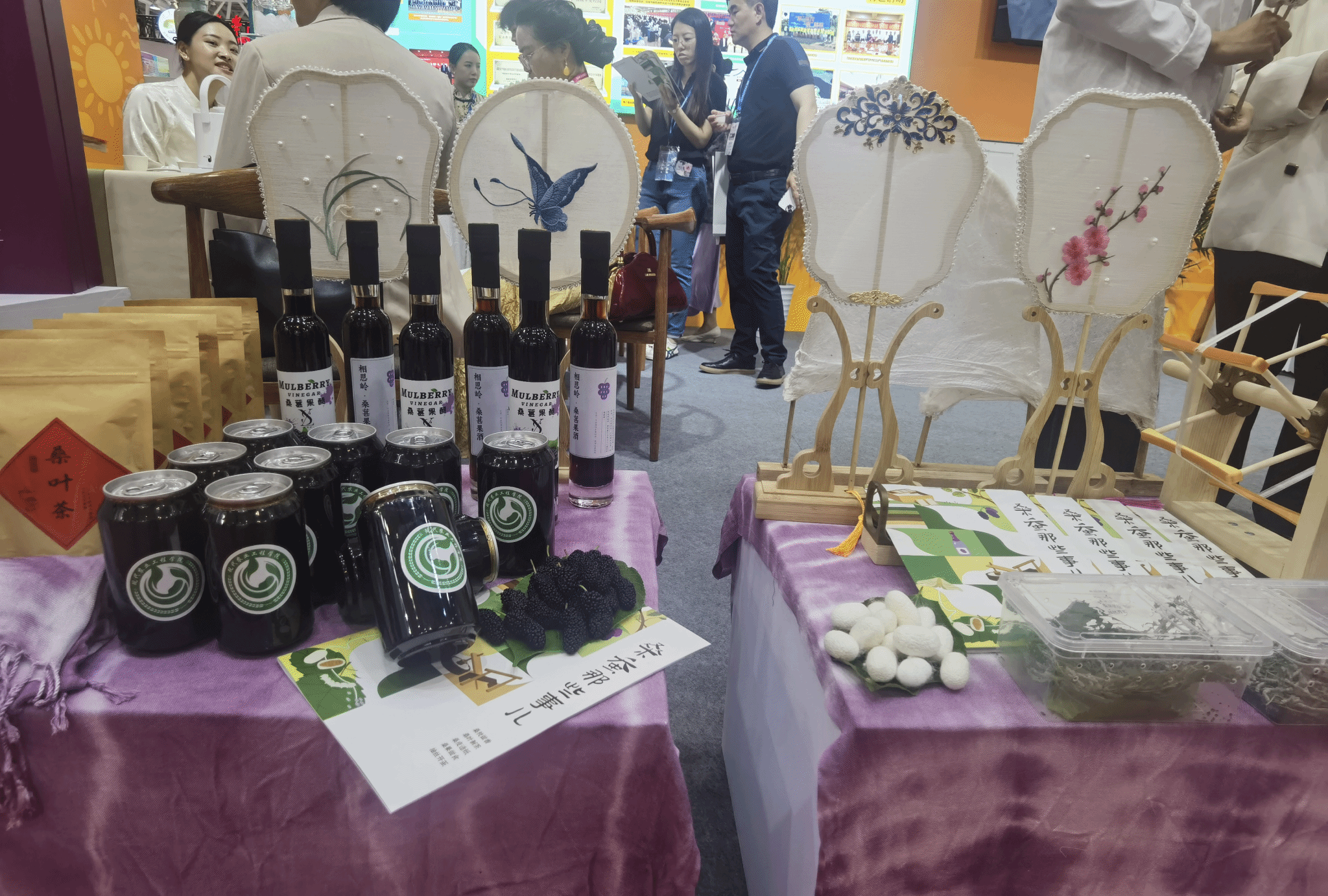 相思岭创业园桑葚果酒、自制蚕丝古风扇