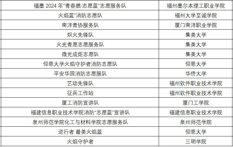 2024年6月30日前,完成大学生消防志愿服务团队组建,团队负责人填写申报表(见附件)并重命名为“高校名字+青春燃·志愿蓝”后发送至2625119@qq.com邮箱。