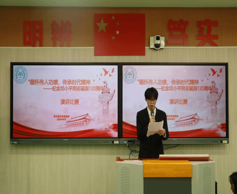 2024年9月29日晚,园艺园林学院举办“缅怀伟人功绩,传承时代精神——纪念邓小平同志诞辰 120 周年”演讲比赛决赛于教学楼(2)404拉开帷幕。