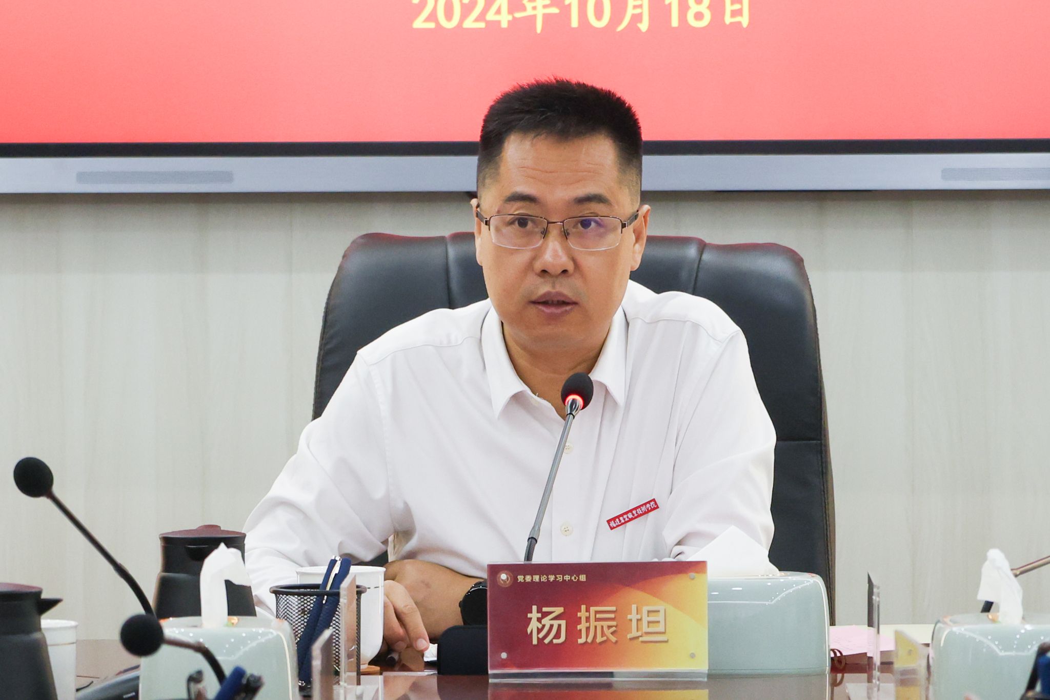 10月18日,学院党委书记杨振坦主持召开党委理论学习中心组第十八次学习(扩大)会,开展习近平总书记重要讲话精神及重要文件专题学习,研究学校贯彻落实意见。学院领导班子成员、中专部负责人、中层正职(含主持)干部参加了会议。
