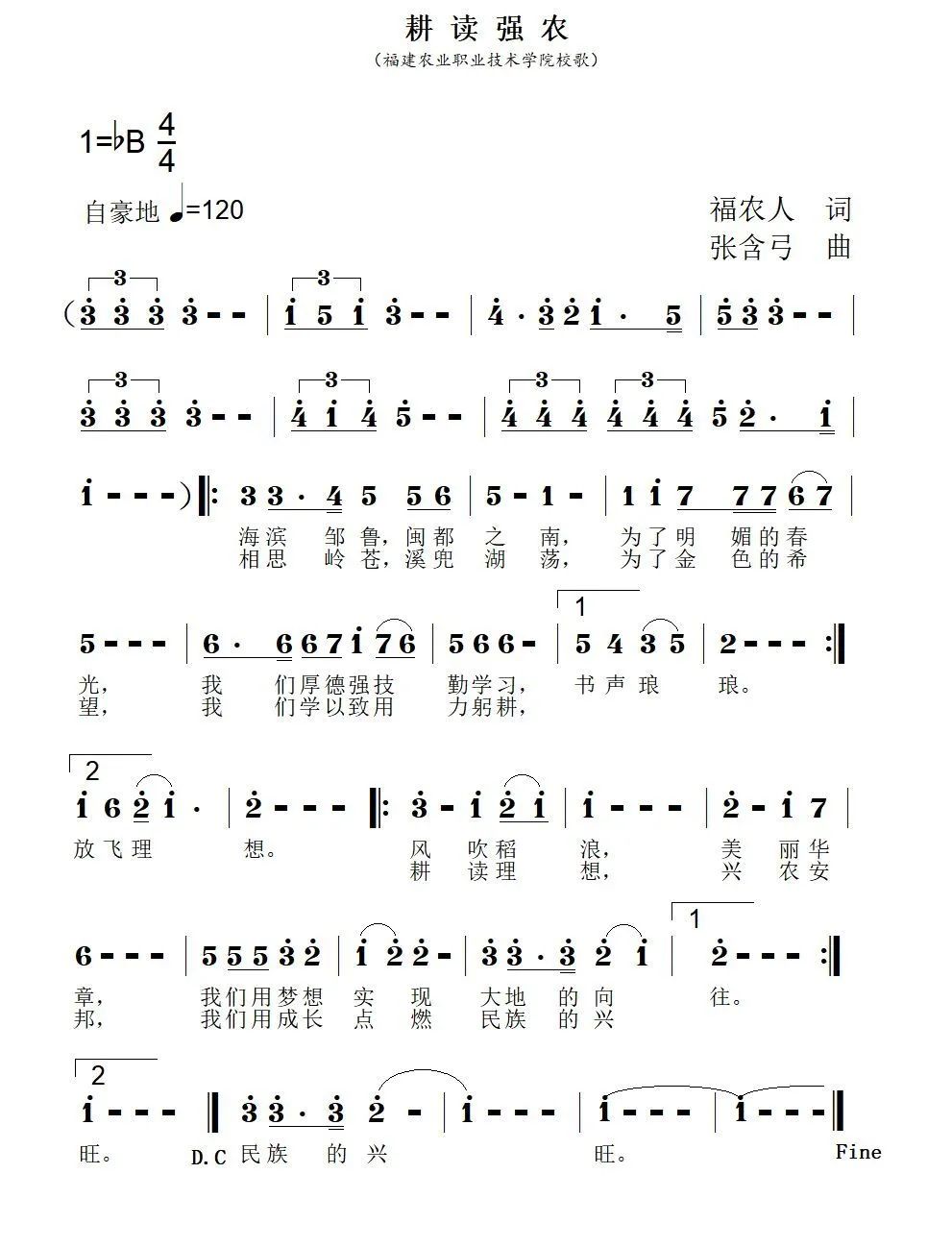 图 | Beat365中文官方网站校歌《耕读强农》曲谱