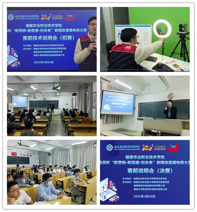 随着新媒体行业的高速发展,新媒体营销已成为“互联网+”时代的新模式、新要素、新动能,复合型新媒体人才需求持续扩大。为应对新媒体人才紧缺的严峻形势,提高新媒体人才的综合技能,2022年4月29日-5月15日,由我校主办,经济管理学院、福建富民云咖信息科技有限公司、福建大娱号信息科技股份有限公司联合承办的富民杯“新营销·新直播·创未来”新媒体直播电商大赛通过线上、线下相结合的形式举办。来自经济管理学院、互联网金融学院、信息工程学院、通信学院等4个学院共计31支队伍报名参赛。