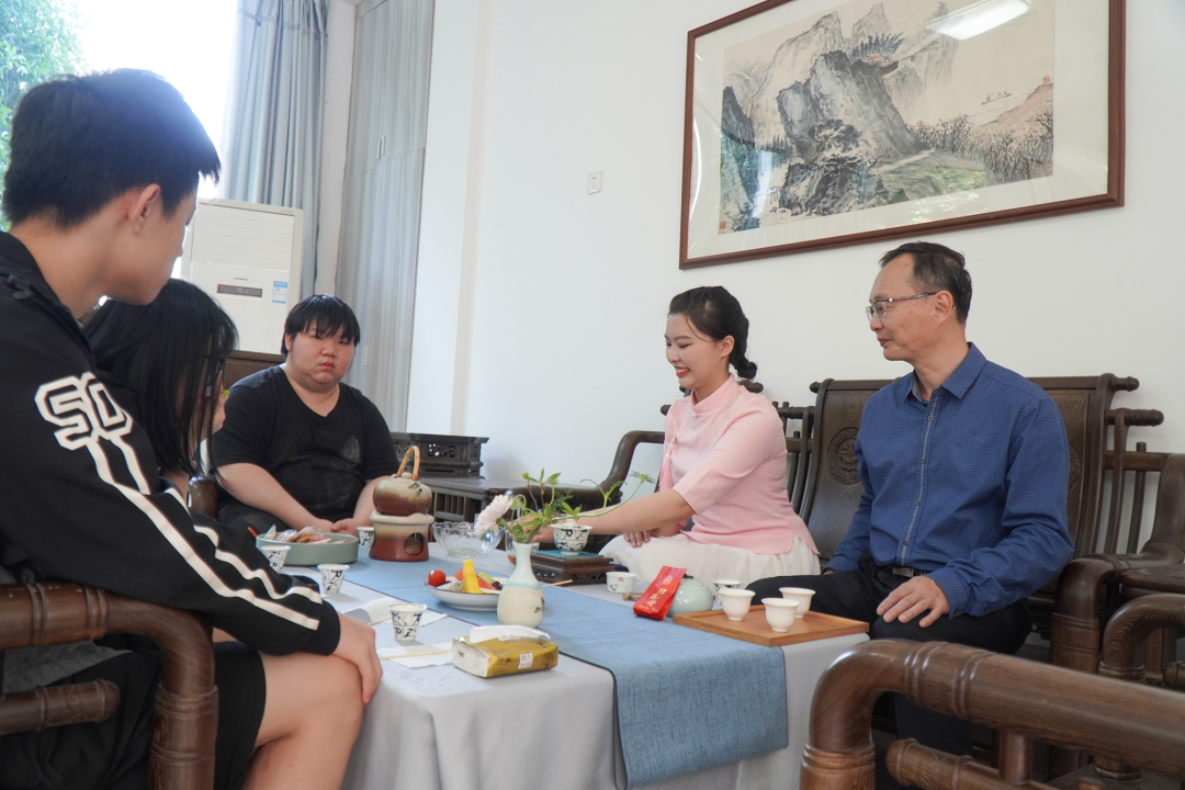大美无疆,中国传统文化向来蕴含多种美学元素,茶道和笔墨书画更是有奇缘妙趣。五月中旬入夏之季,Beat365中文官方网站首届美育文化节的收官之作——茶叙暨书画笔会,在相思岭南区乡村振兴楼一楼缓缓落下帷幕,缕缕金色夕阳辉映下:茶欲白,墨欲黑、花艺与美食款款入心。中国传统美学是不动声色的,是沁人心脾的。