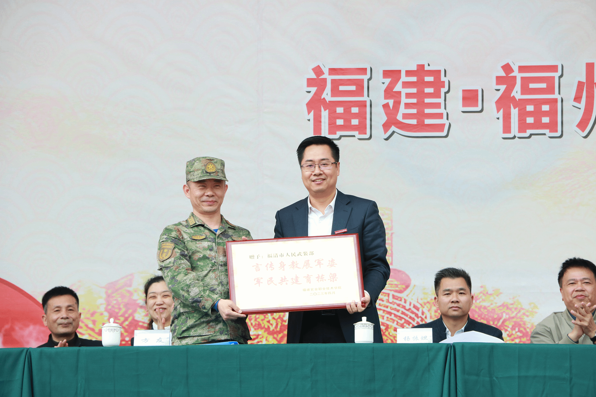 杨振坦书记向福清市人武部对本次军训给予的大力支持表示衷心感谢,并代表学院向方部长赠送了牌匾。