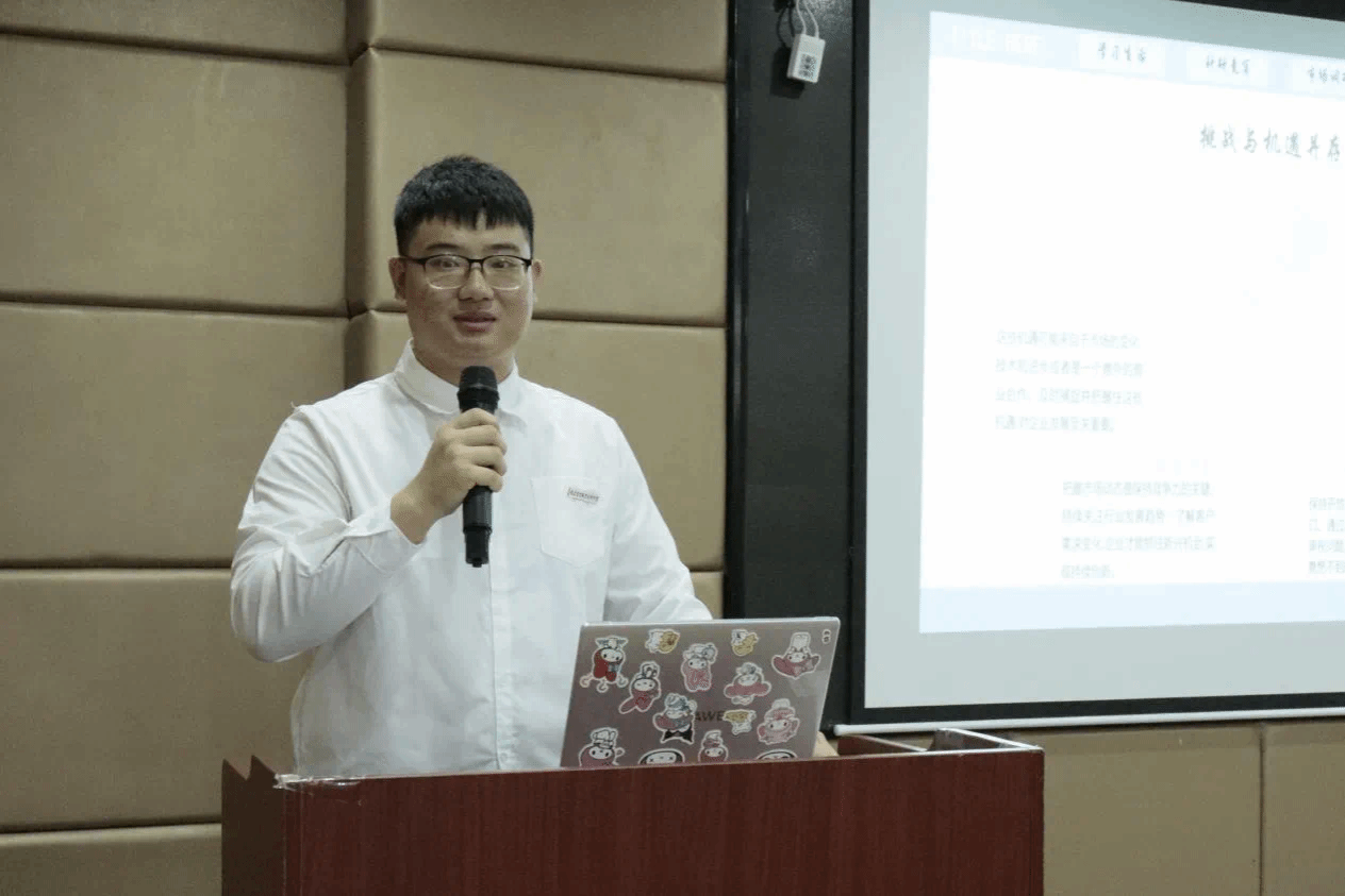 分享会上,陈钧妍和蒋毅龙同学为大家详细介绍了“康猪缘”项目的概念、理念以及项目内容,分享了她们团队的创业故事。陈钧妍同学建议想要创业的同学们一定要有团队协作意识;团队成员技能互补、价值观一致;还要定期进行沟通培养团队成员的归属感和认同感,增强团队的凝聚力。