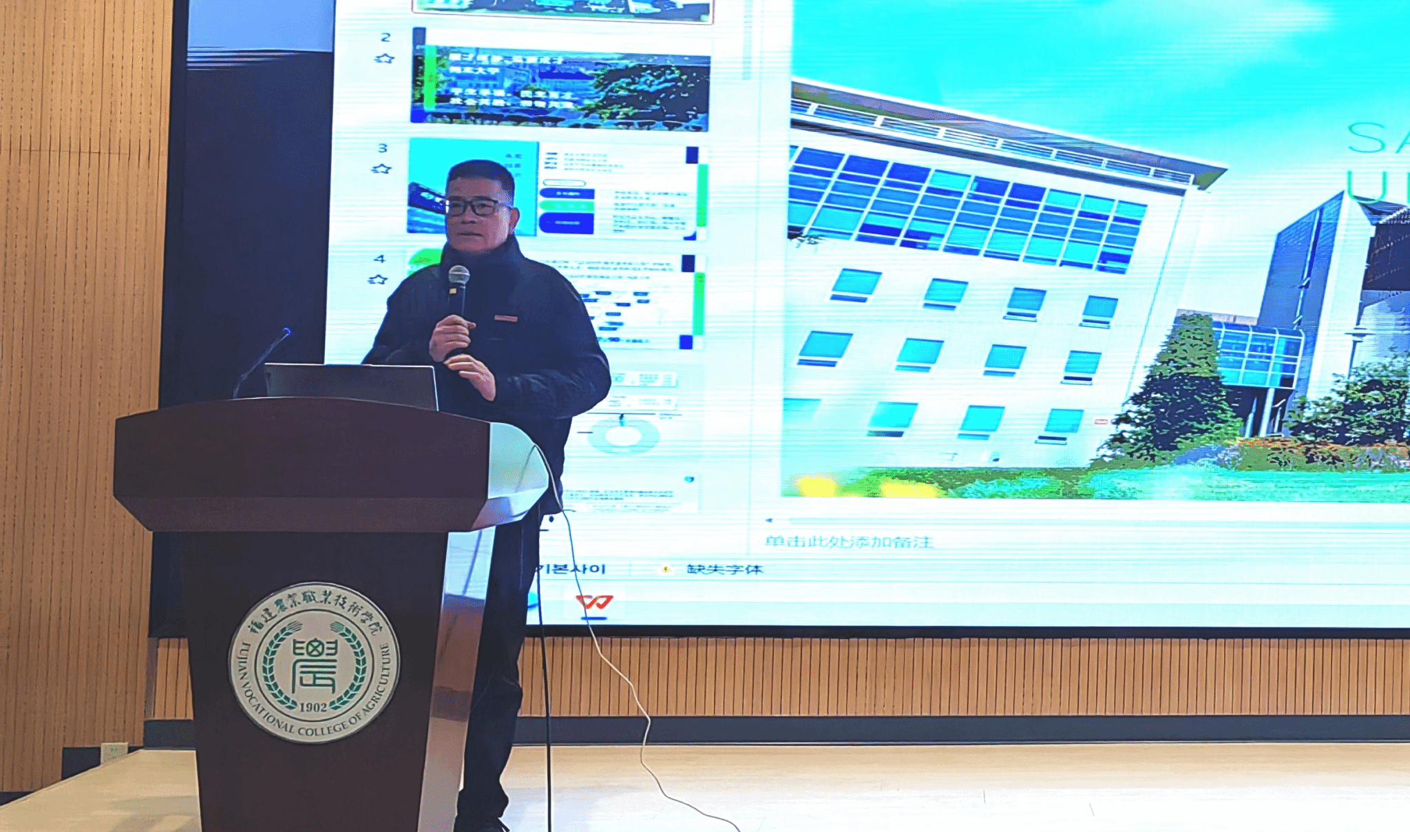 2024年12月16日下午14:00,韩国尚志大学企划处长兼造景山林学科长奇景石博士,在动科大楼2楼报告厅作主题为“保护区声音环境的重要性”讲座,学院党委委员、副院长侯志宏、园艺园林学院院长王会全、园林专业师生共160余人参加。