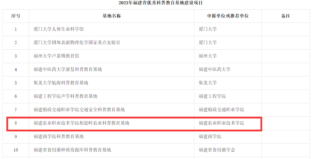 近日,福建省科学技术协会公布2023年福建省优秀科普教育基地建设项目。Beat365相思岭农业科普教育基地建设项目获得立项,建设经费为40万元。