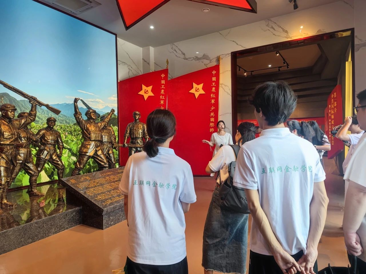 7月29日下午,实践团成员率先踏入了建宁县中央苏区反“围剿”纪念园。在馆内讲解员的带领下,他们逐一参观了少共国际师主题展陈与中央苏区反“围剿”陈列馆。每一张图片、每一段文字、每一件实物,都仿佛穿越时空的桥梁,将实践团成员们带回了那个烽火连天的年代。他们深刻了解了少共国际师的诞生历程、英勇战斗以及五次反“围剿”期间革命先辈们在建宁这片土地上留下的宝贵遗产和感人至深的故事。这些珍贵的资料,不仅让实践团成员们对历史有了更为直观的认识,更在他们的心中种下了敬仰与传承的种子。