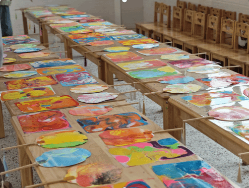 活动伊始,志愿者们通过PPT演示向侯家斌小学的同学们介绍了非遗文化的基本概念,包括水拓画制作方法、历史文化背景等。随后,同学们在志愿者的引导下,纷纷动手制作水拓扇、非遗纸翻花和水拓画。其中,在水拓画的制作中,几位同学分成一组,他们调配画液、滴入颜料,勾勒出斑斓的图案,一张张水拓画“脱水而出”,展现了同学们的丰富创造力,也让他们体验到了非遗文化的艺术之美。