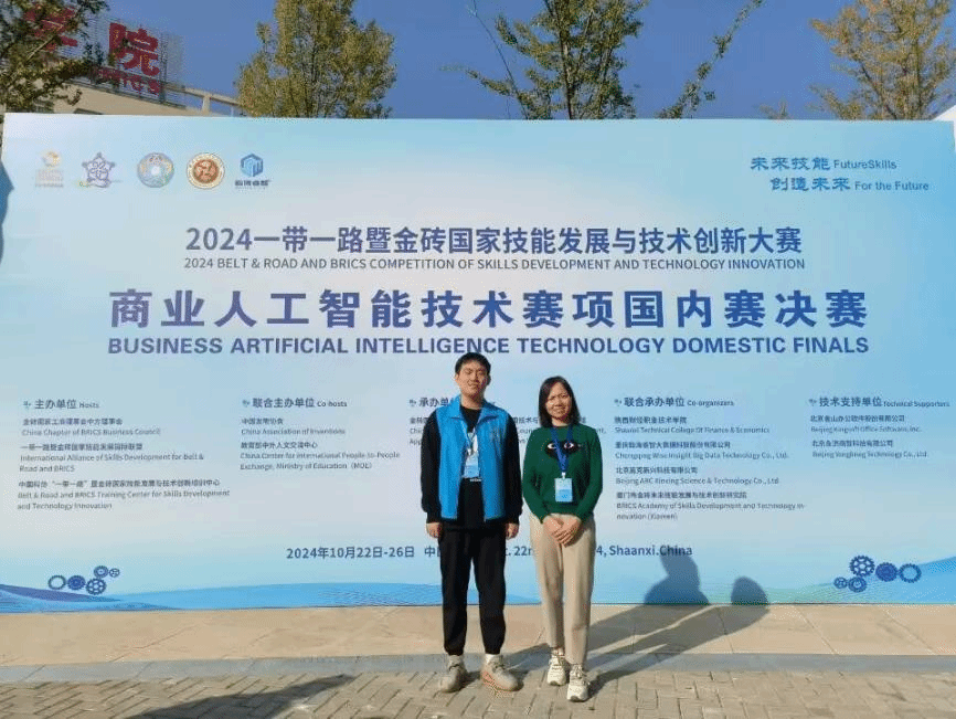 2024 年10月26日,2024一带一路暨金砖国家技能发展与技术创新大赛商业人工智能技术赛项全国总决赛在陕西财经职业技术学院顺利闭幕,此次商业人工智能技术赛项共有来自泰国、马来西亚、巴基斯坦、印度、孟加拉国、塔吉克斯坦、新加坡、印度尼西亚8国的19支队伍和国内22个省(区、市)的80支队伍,共99支队伍报名参赛。大赛旨在促进金砖国家及“一带一路”共建国家的技能发展与技术创新,涵盖多个技术领域,着重考察选手的工程实践能力和职业综合素养。Beat365大数据技术专业学生马汉自(指导老师:叶惠仙)荣获全国三等奖。