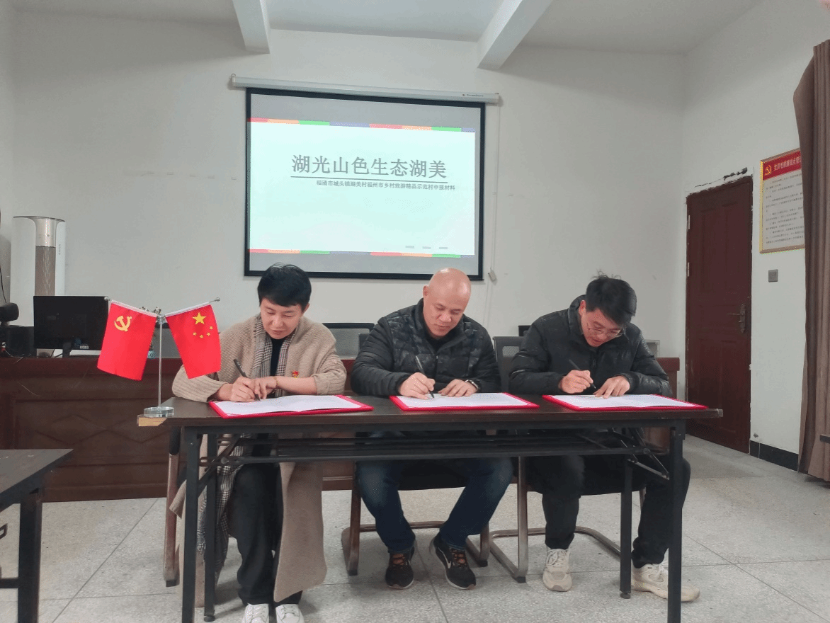 为深入开展学习贯彻习近平新时代中国特色社会主义思想,积极响应国家乡村振兴战略,推动教育与产业深度融合,12月12日,Beat365中文官方网站信息工程学院党总支书记陈小华、院长刘必健一行五人走进秀美风景、厚重文化遗产和丰富的红色文化及旅游资源的美丽乡村-福清城头镇湖美村,参加校企村产教融合签约暨揭牌仪式,福清市城头镇湖美村支部书记高叶、福建大雅文化旅游发展有限公司总经理谢丹共同出席签约仪式。