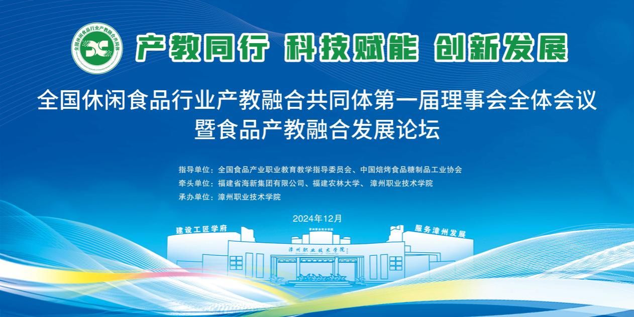 12月15日,全国休闲食品行业产教融合共同体在漳州职业技术学院成立。大会审议并表决通过了《全国休闲食品行业产教融合共同体章程》《全国休闲食品行业产教融合共同体五年发展规划(2024-2029年)》,选举共同体理事长、副理事长、理事单位,并举行了隆重的授牌仪式。我校被授予副理事长单位。