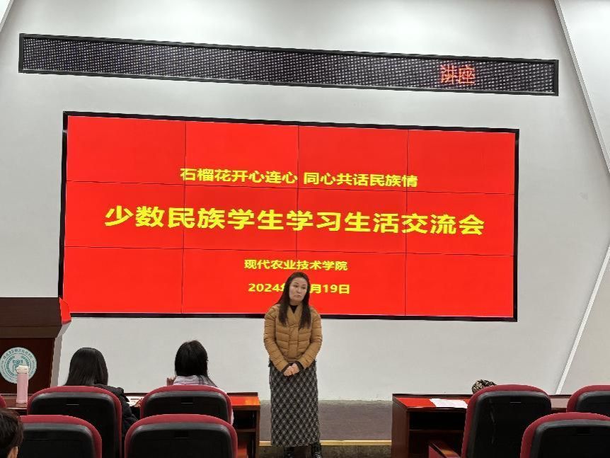 石榴籽一家亲,民族团结心连心。12月19日晚,现代农业技术学院在教学楼2号楼212教室召开少数民族学生学习生活交流会。学院程晓琳老师,学工部迪力拜尔老师,学工办负责人沈云玉老师、团委书记胡彩艳老师、辅导员张泽坤老师以及在校各年级的少数民族学生参加交流。