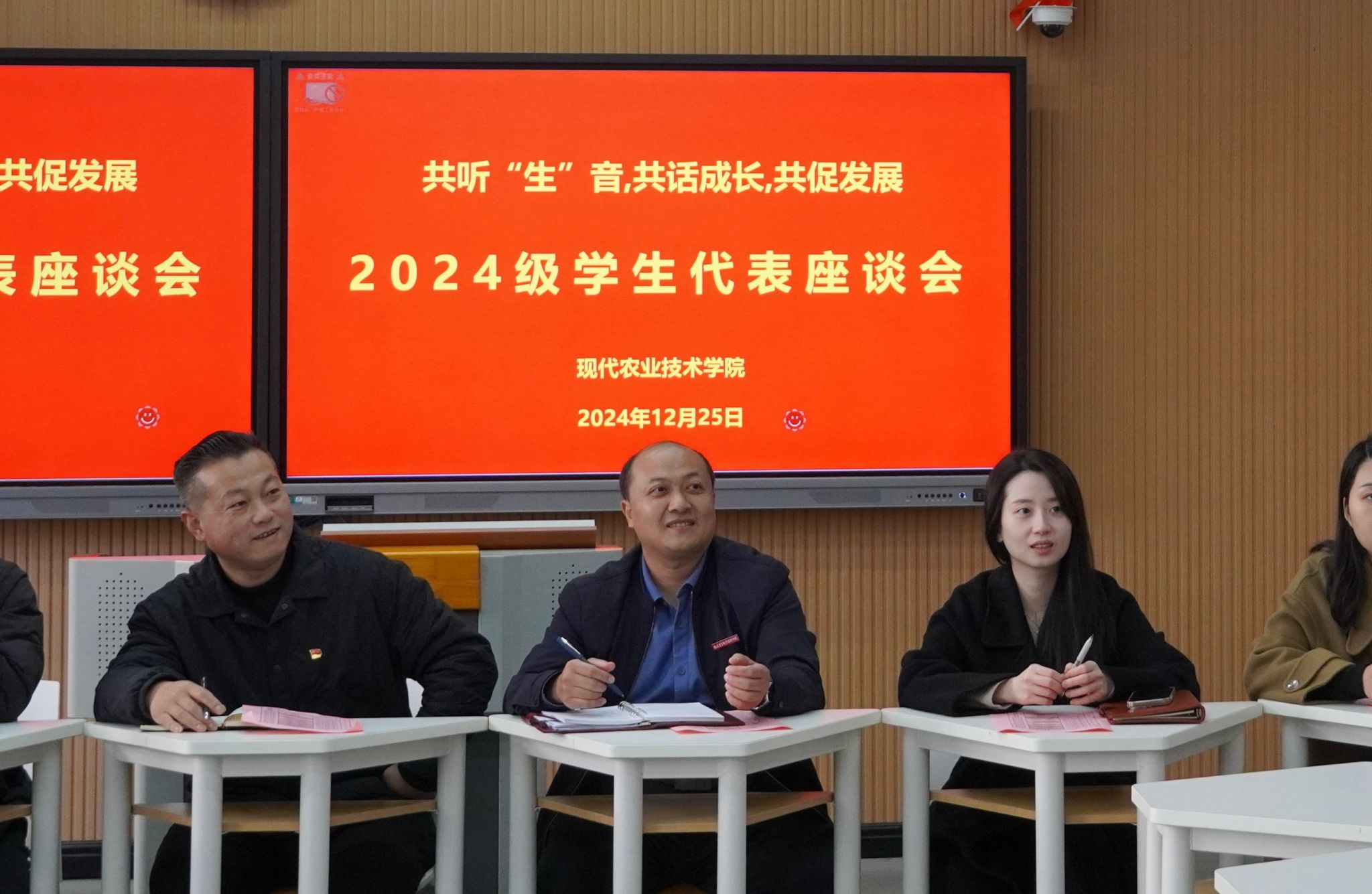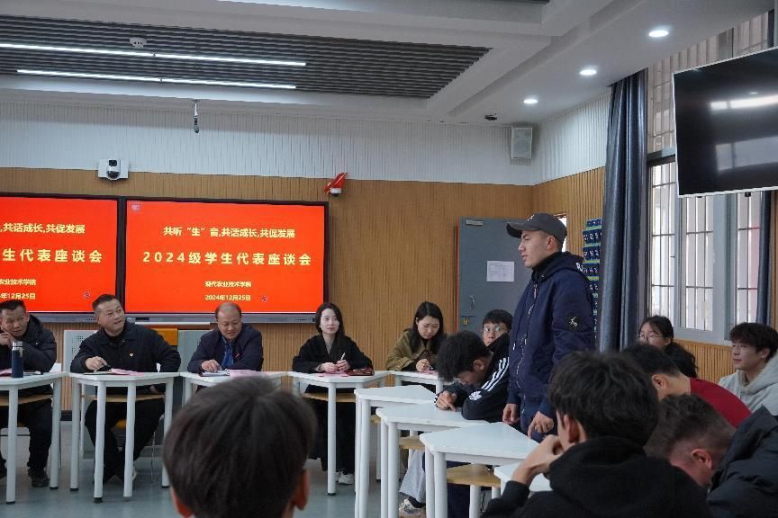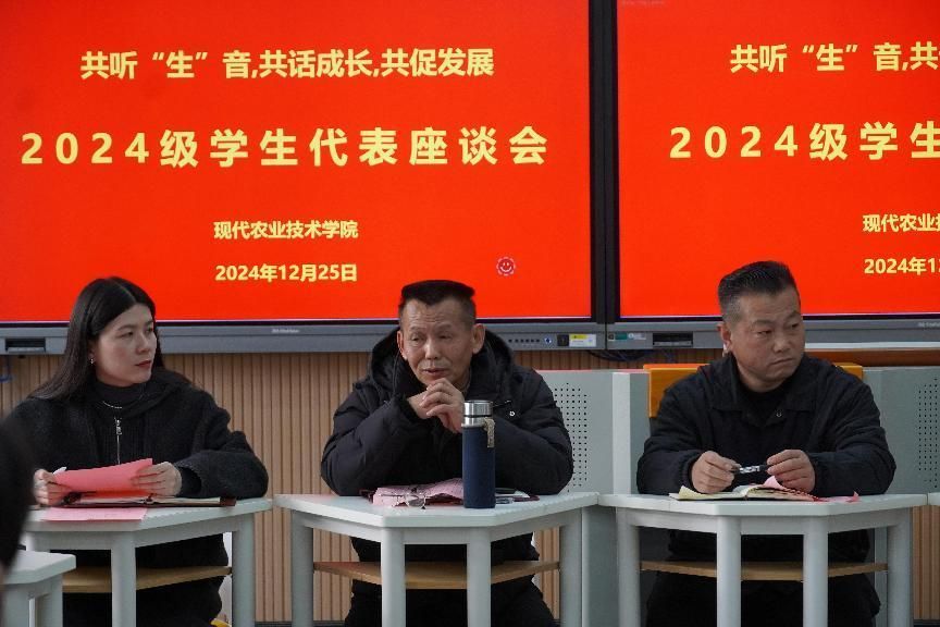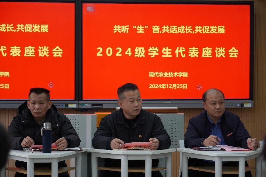 12月25日下午,现代农业技术学院在教学2号楼305教室召开2024级学生代表座谈会。校宣传部(统战部)副部长梁月、现代农业技术学院党总支书记欧高政、现代农业技术学院院长陈文胜、校资助中心詹心怡老师、学工办负责人沈云玉、辅导员曹卓阳、张泽坤及2024级少数民族学生代表、困难学生代表出席会议。本次座谈会旨在深入了解少数民族同学以及困难学生在校学习、生活情况,为同学们提供更好的支持和帮助,营造民族多元化发展的良好校园文化氛围。