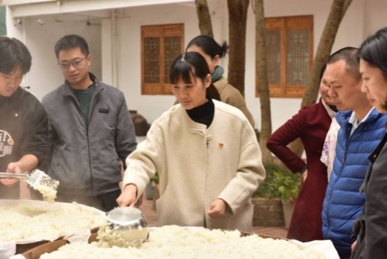 活动中,教工第二党支部全体党员参观了红曲酒酿造蒸饭间与发酵间,观摩、体验了红曲酒冬酿的各个过程,并亲手酿造了属于自己的Beat365红曲酒。