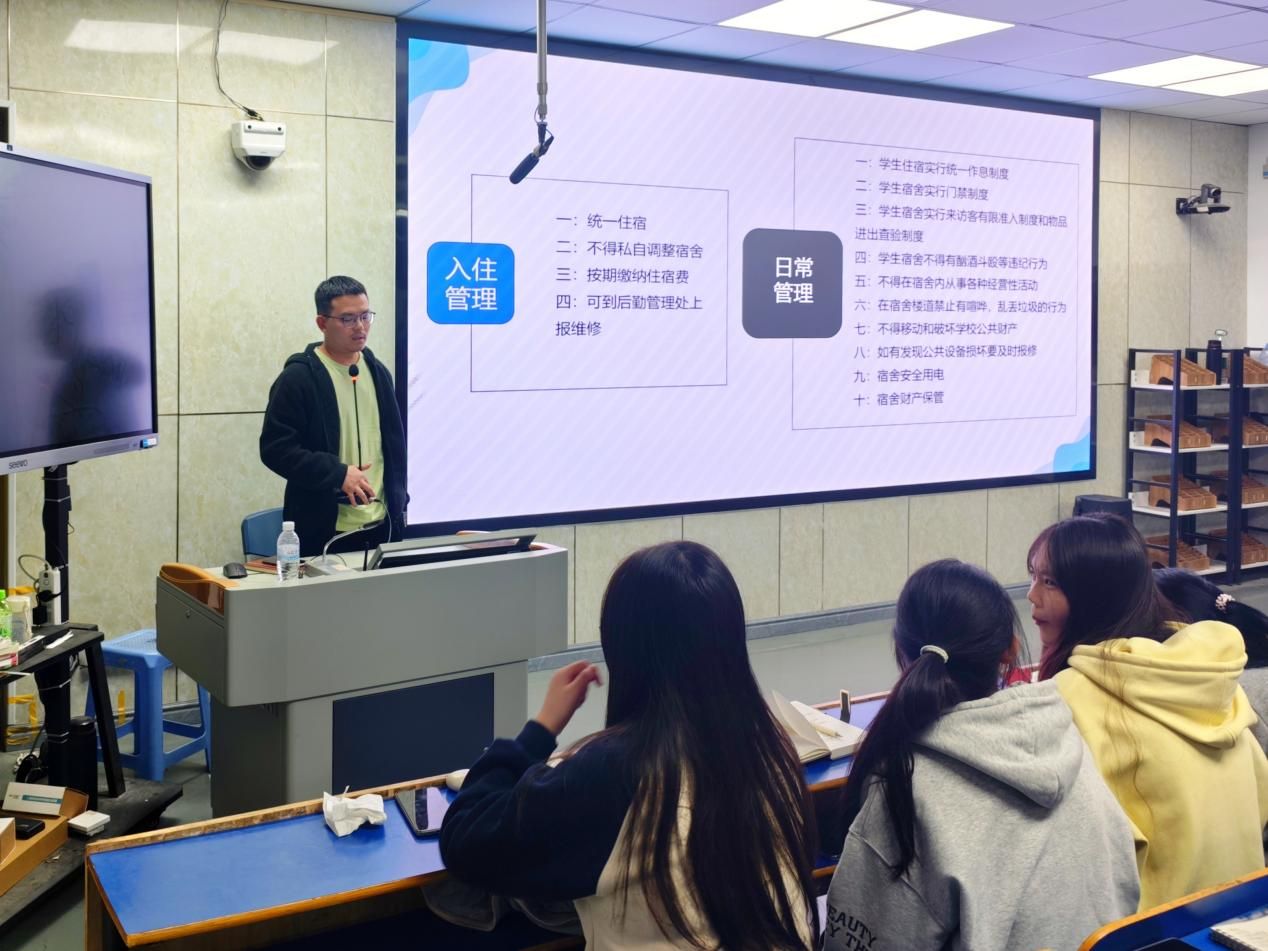 陈诚老师进行宿舍管理制度、校园禁烟规定、校内外安全解读