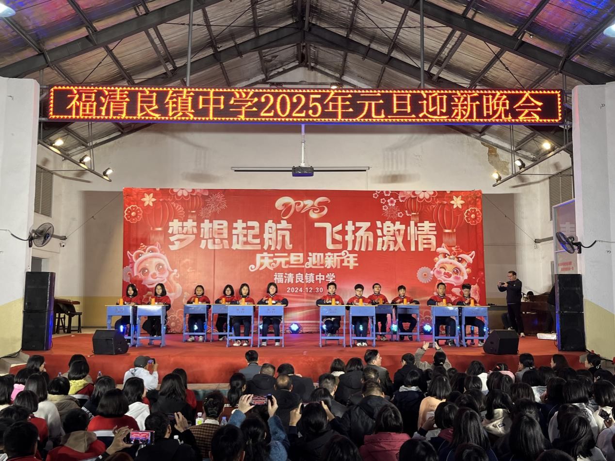 2024年12月30日,随着新年钟声的临近,良镇中学校园内洋溢着节日的喜庆气氛。信息工程学院师生积极响应,组织了一支由14名师生组成的志愿者团队,协助良镇中学成功举办了“梦想启航,飞扬激情”元旦迎新晚会。