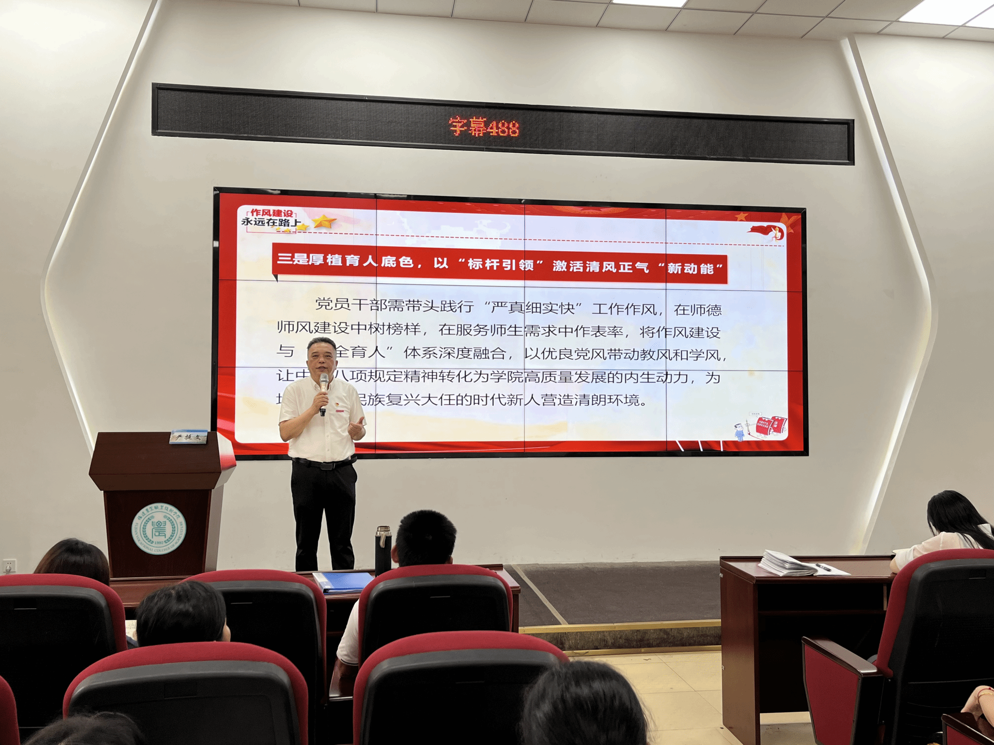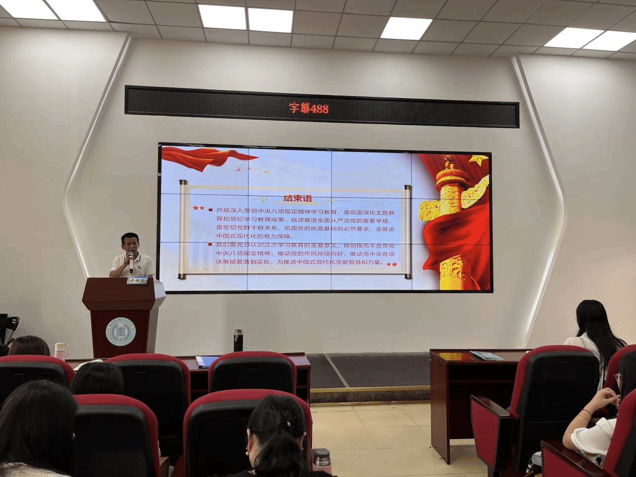 课上,严挺文副校长结合高校工作实际,用通俗易懂的语言解读了中央八项规定的核心内容,并通过典型案例剖析了高校常见的违规问题。他强调,作风建设不是空话,要落实到日常工作中——少开无效会议、节约办公资源、杜绝学术不端、严守师德规范。