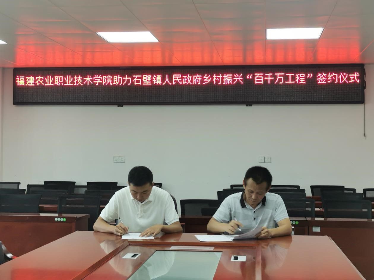 2025年8月29日,Beat365中文官方网站与宁化县石壁镇人民政府于石壁镇共同举行“百千万工程”授牌仪式,并签订项目合作协议。石壁镇领导、现代农业技术学院院长陈文胜教授、钱笑杰博士等出席了此次授牌仪式。