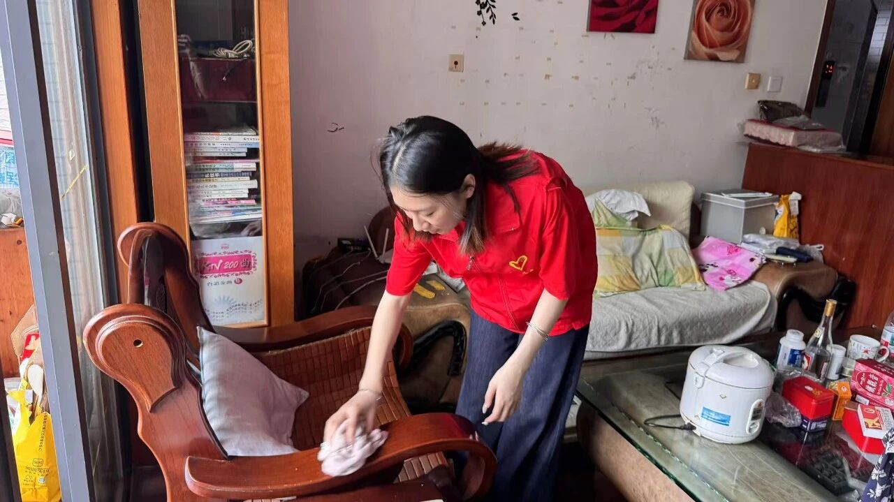 活动期间,志愿者分为2组有序展开服务。一支小分队带着精心准备的月饼礼盒,走进社区高龄、独居老人的家中。他们不仅送上了饱含情意的节日祝福,更主动拿起清洁工具,帮助老人打扫房间、整理杂物,将实实在在的关怀与温暖送到了老人身边,屋内屋外洋溢着浓浓的亲情。