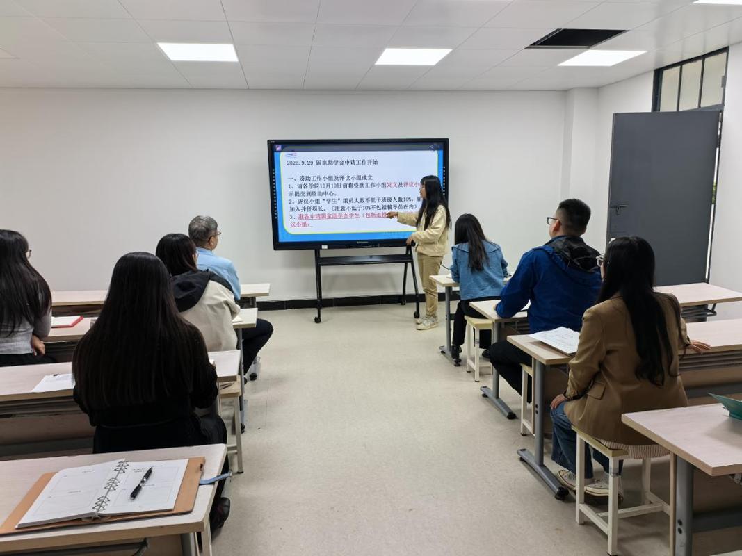 徐捷在总结讲话中指出,评优评先是高校思政教育的重要环节,需以政治标准为首位,综合考查学生思想品德、学业表现与社会实践,始终坚守“公平、公正、公开、择优”原则;国家资助政策是教育公平的重要保障,辅导员要全面掌握申请学生家庭经济困难情况与资助需求,确保资源用在“刀刃上”。他还强调,辅导员是大学生人生的引路人,大家必须将廉洁自律内化于心、外化于行,把廉洁要求贯穿于育人工作的每一个环节。