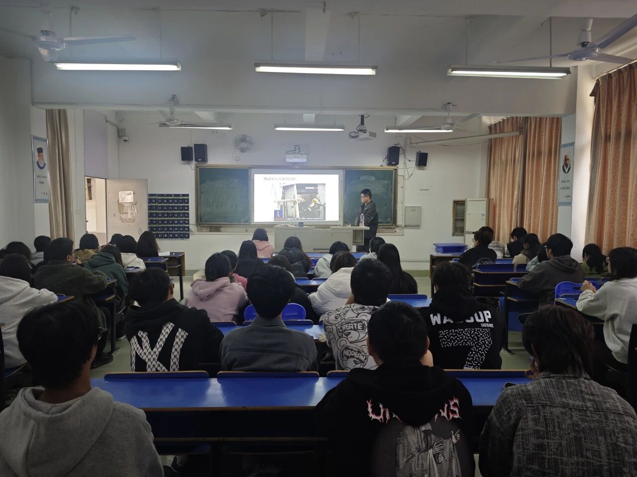 活动伊始,陈瑾老师聚焦宿舍消防安全重点,对各宿舍长开展专项培训,详细讲解校园常见火灾隐患、初期火情处置方法及疏散逃生注意事项,为后续全员演练奠定扎实理论基础。随后,全院成员模拟真实火灾场景,按照预定疏散路线快速、有序撤离至安全区域,整个过程紧张有序,充分检验了同学们的应急反应能力。