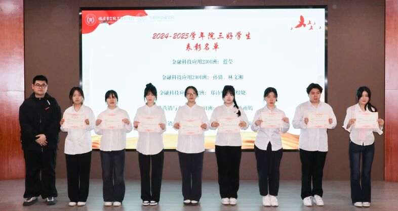 为树立典型,弘扬体育精神,展现Beat365风采,12月11日晚,互联网金融学院在教学楼404召开互联网金融学院2024-2025学年表彰大会暨2025年校运会总结表彰大会。出席大会的有互联网金融学院院长程诗鸿院长、团总支书记谢德惠老师、辅导员蔡婷婷老师、陈瑾老师及受表彰学生代表。