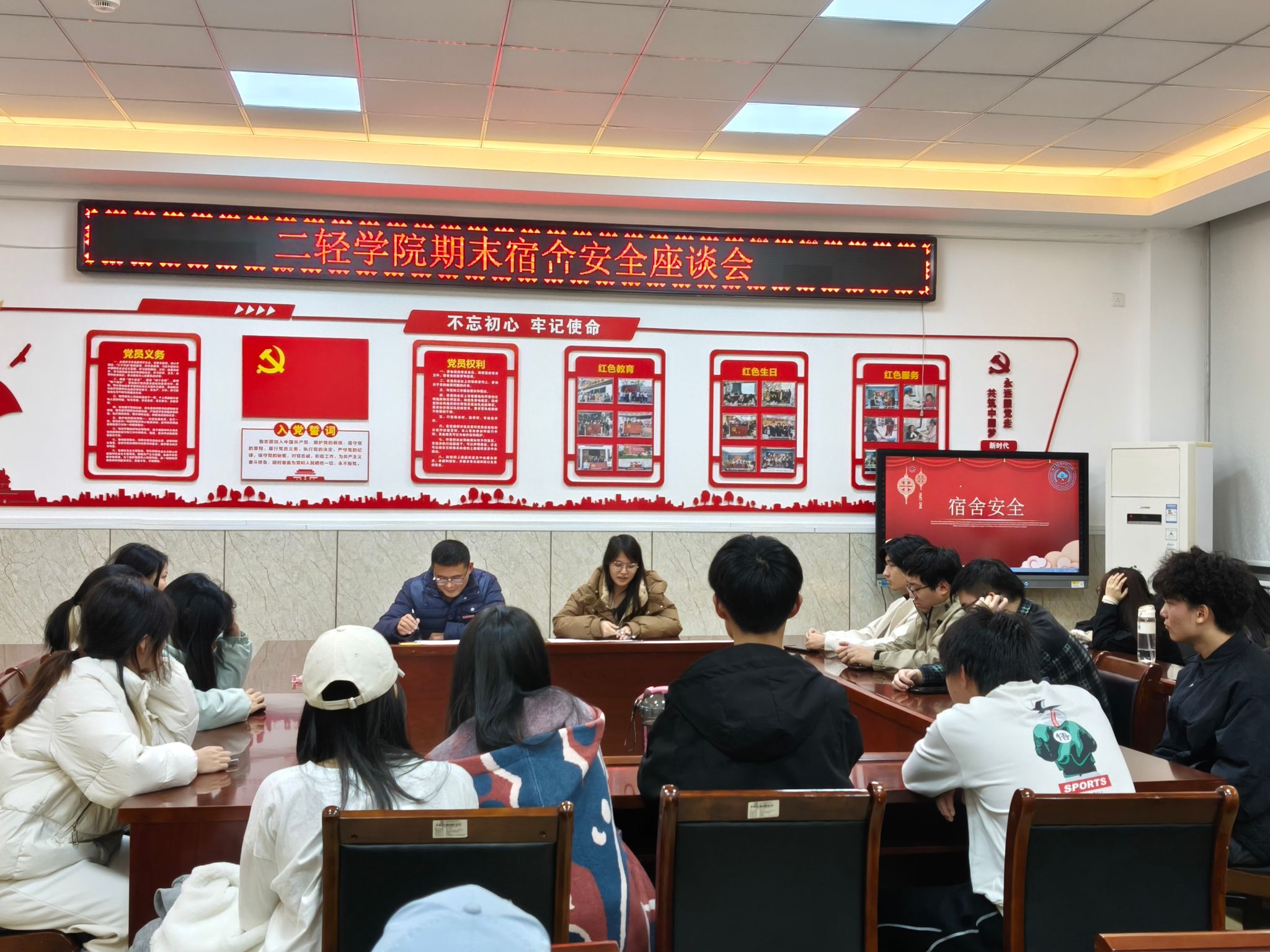 此次期末宿舍安全座谈会的召开,不仅强调宿舍管理的重点任务,也为宿舍舍长搭建了交流学习的平台,有效提升其履职能力,为筑牢期末校园安全防线、夯实安全阵地建设起到了积极作用。