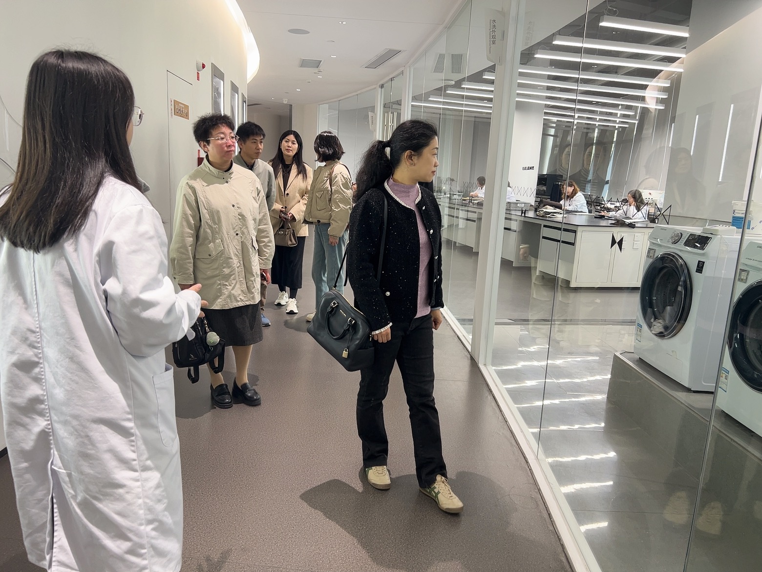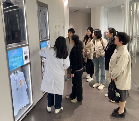 下午,考察组一行前往利郎(中国)有限公司,实地参观利郎研发中心。在总裁特别助理陈佳的陪同下,考察组深入了解中心的资质认证、技术创新,重点观摩面料检测各专业实验室的运作流程,相关负责人详细介绍了面料褪色、起球等问题的检测与相应的技术改进。