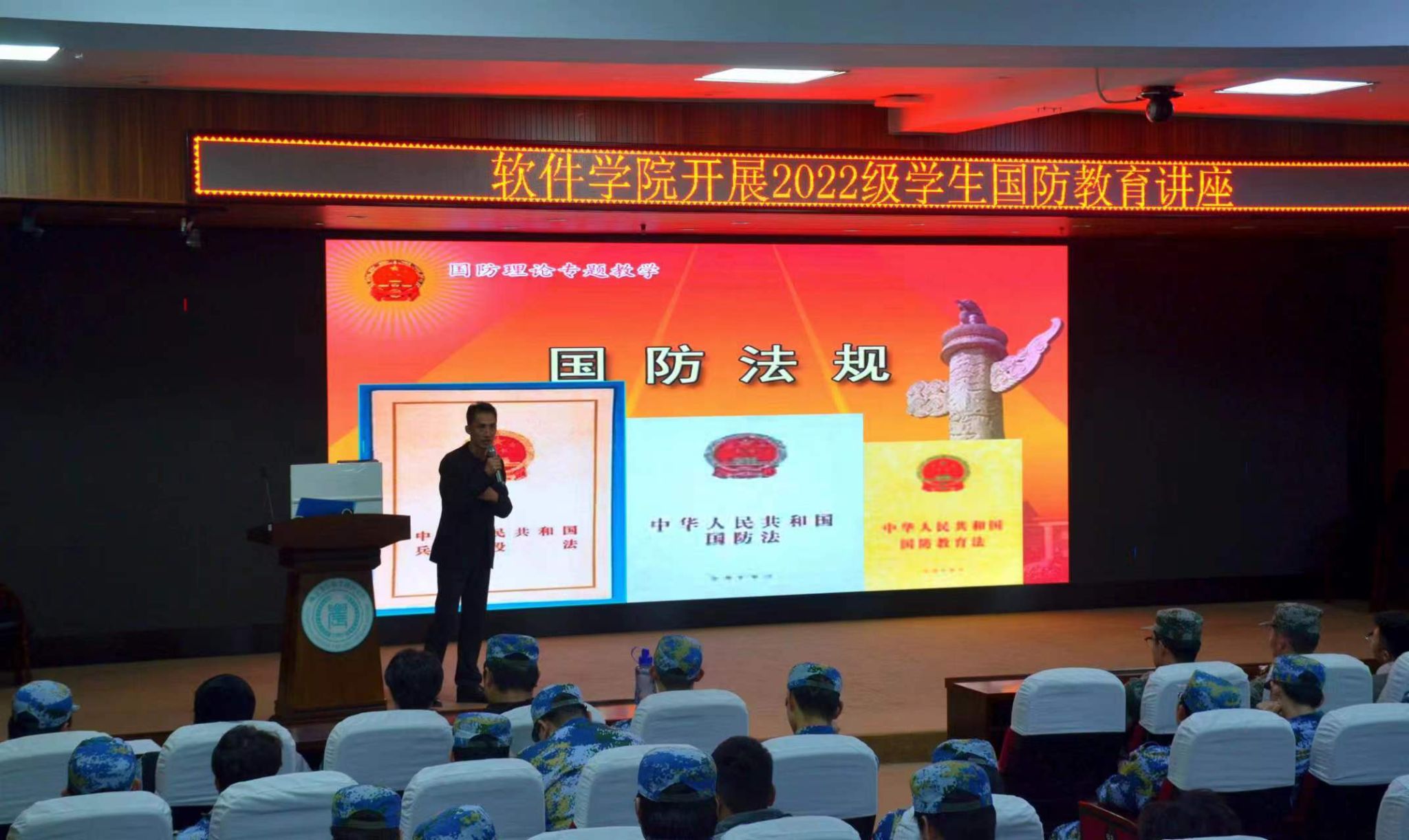 会议上,副院长围绕“国防概述”、“中国国防历史”、“国防的基本类型”、“现代国防的基本特征”四大板块进行了宣讲。在说明中国国防历史时,详细的说明了历代朝代的国防与近代中国的历史。为了实现中华民族伟大复兴的中国梦,每一个中国人义不容辞。时代的接力棒传到了我们手中,我辈青年当自强,为中华之崛起而读书。副院长慷慨激昂的精彩演讲,让全体学生心潮澎湃。