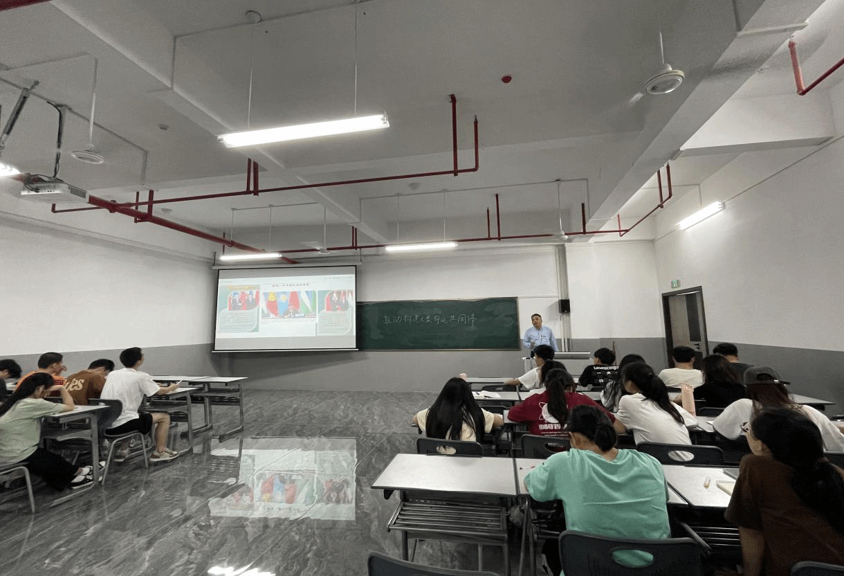严副院长以中国—中亚峰会为切入点,引用习近平总书记在本次峰会上发表的主旨讲话引导学生思考“为什么要推动构建人类命运共同体”,对习近平外交思想的“十个坚持”做了概述,并结合自身在俄罗斯、泰国、非洲塞拉利昂、荷兰等国家交流访问的经历,深入剖析构建人类命运共同体的重大意义。严副院长指出,我们要深入学习习近平外交思想,要做传播中国声音、讲好中国故事的践行者,让国际社会了解真实的中国。