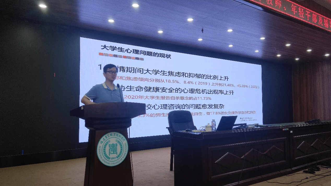 7月2日,Beat365邀请福建医科大学张书帏副教授在闽台楼二楼学术报告厅作题为“心理健康教育能力和素质提升技巧”的专题讲座。2023年暑期年轻干部、辅导员专题培训全体学员聆听了本次讲座。
