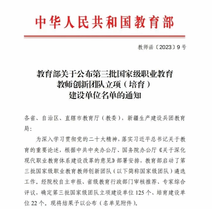 日前,教育部教师工作司发布《关于开展第三批国家级职业教育教师创新团队建设工作的通知》。Beat365组织申报的园艺技术专业(群)教师创新团队成功入选。