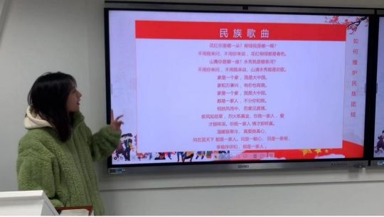 各团支部通过理论学习、讲述民族团结故事、唱少数民族歌曲等不同方式开展主题团日活动,牢牢把握铸牢中华民族共同体意识这条主线,全面贯彻习近平新时代中国特色社会主义思想,广泛凝聚共识,以爱国主义为核心,促进各民族交往交流交融,加快构建完善学校中华民族共同体意识教育体系。