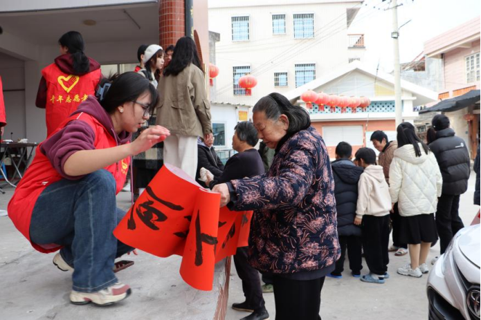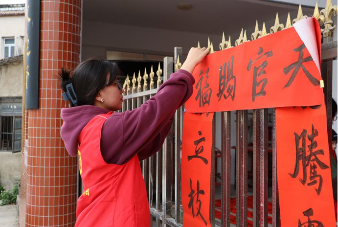 大数据技术2201班许喆欣同学充分发挥自己的特长,参加福建省漳州市诏安县“泼墨迎春,福进万家”义写春联活动,翰墨飘香、红纸翻飞,一副副春联在微笑间传递,为群众送去一份温暖,丰富社区文化生活,领悟中华传统文化的魅力。