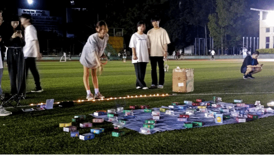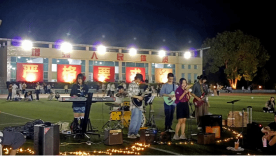 操场上的点点灯光犹如璀璨星空