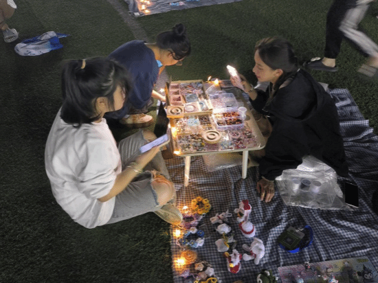 夜空繁星下,校园小夜市