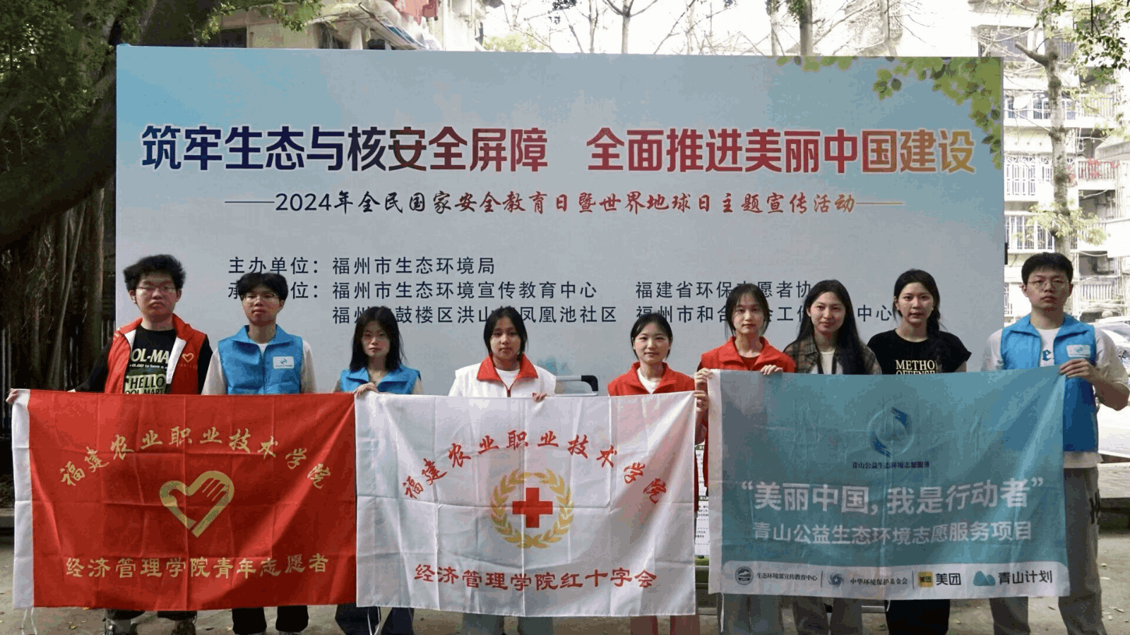 4月17日,由福州市生态环境局主办的2024年全民国家安全教育日暨世界地球日主题宣传活动在福州文林山革命英烈纪念园东大门广场开展,经济管理学院志愿者参与其中,号召更多的青年大学生投身于环保行动中,让人人都成为生态文明建设的推动者和践行者。