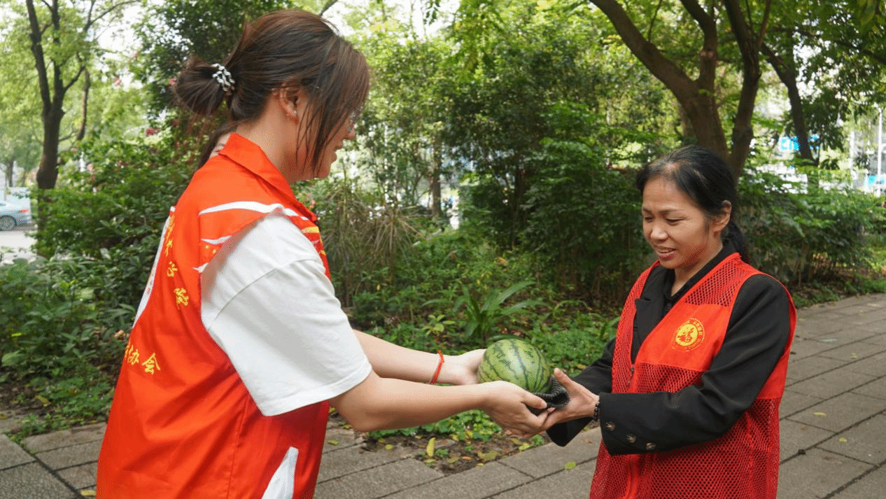 活动开始前,社区劳动志愿者为青年志愿者们普及了日常垃圾分类小知识及相关流程规范。随后,青年志愿者们分组开展清洁社区活动。大家对社区内卫生死角、绿化带内垃圾进行了清理,再根据所学的垃圾分类流程对垃圾进行了归整。待一切收拾完毕,青年志愿者们为社区劳动志愿者送上清凉解暑的西瓜,以致敬最美劳动者。