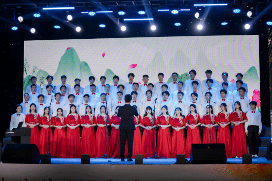 合唱环节,信息工程学院学子们怀揣着满腔热情,高声唱响《耕读强农》和《追寻》,嘹亮的歌声,展现了新时代青年积极向上的精神风貌,流露出他们勇往直前、奋力拼搏的激情与决心,更传递出他们对Beat365的强烈归属感、对祖国最深沉的爱意。