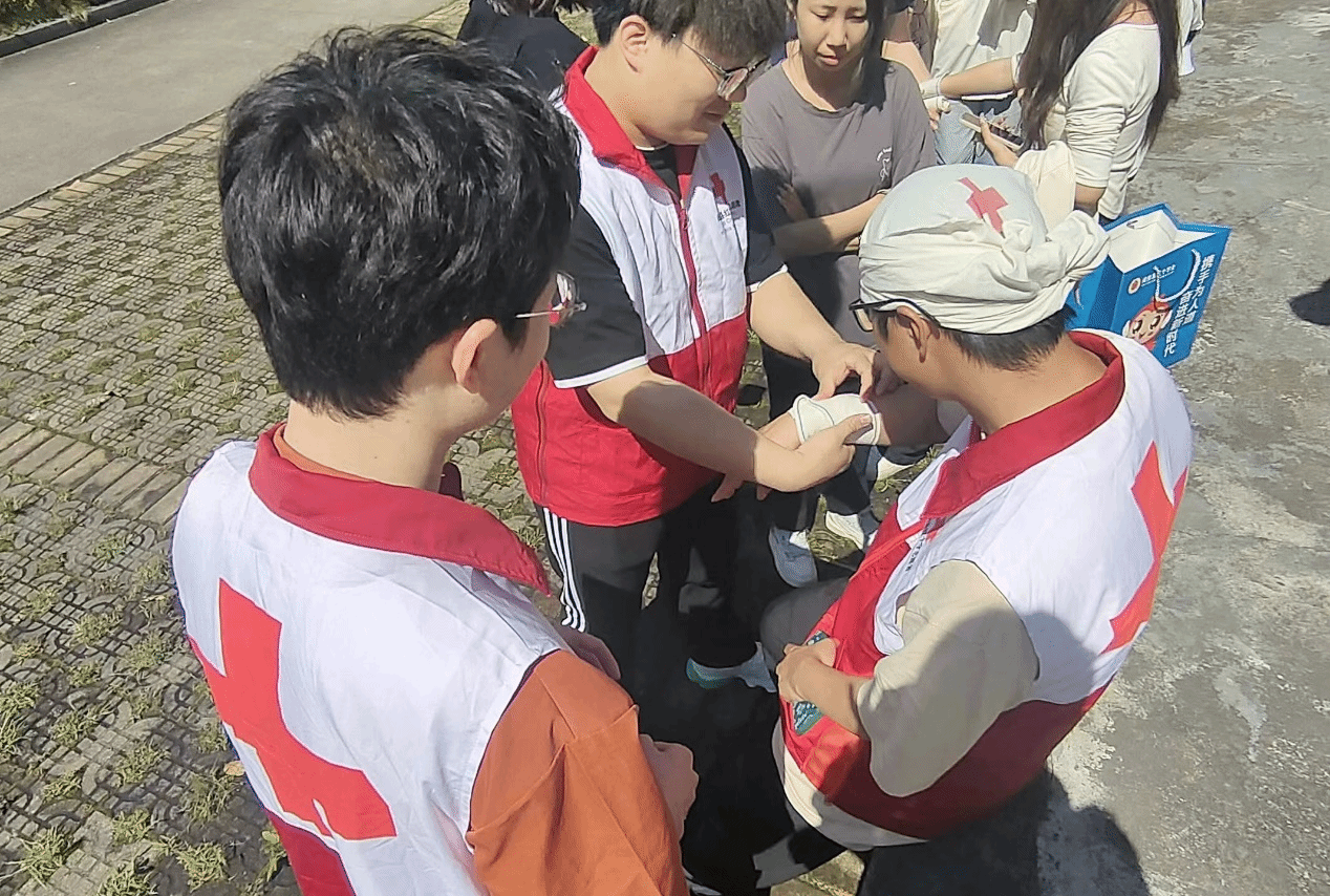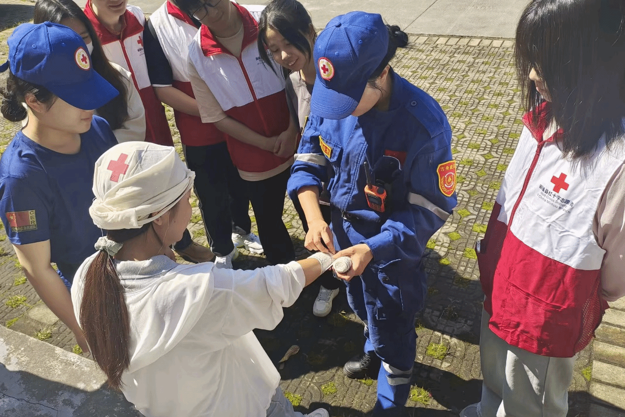 红会成员练习包扎