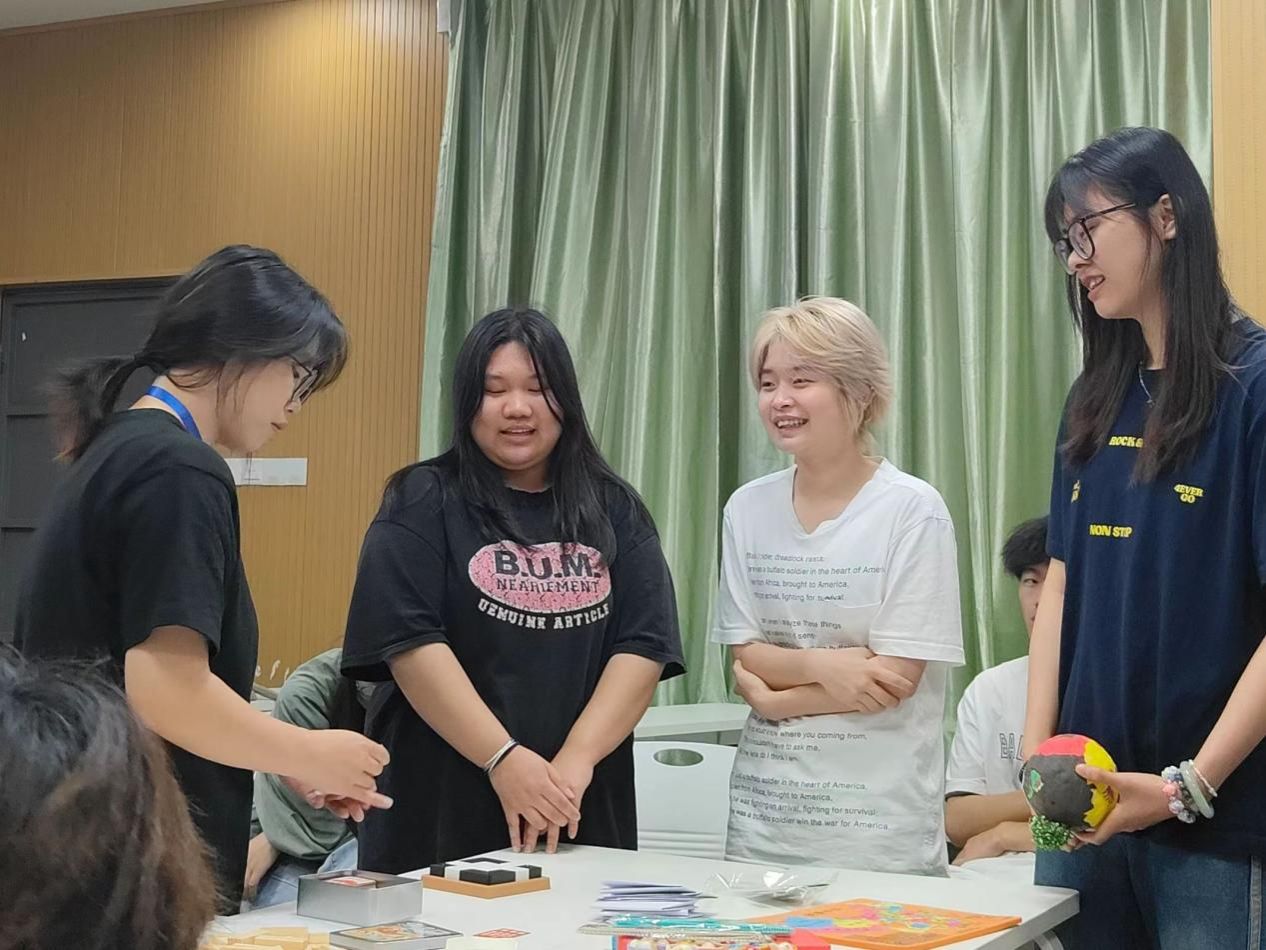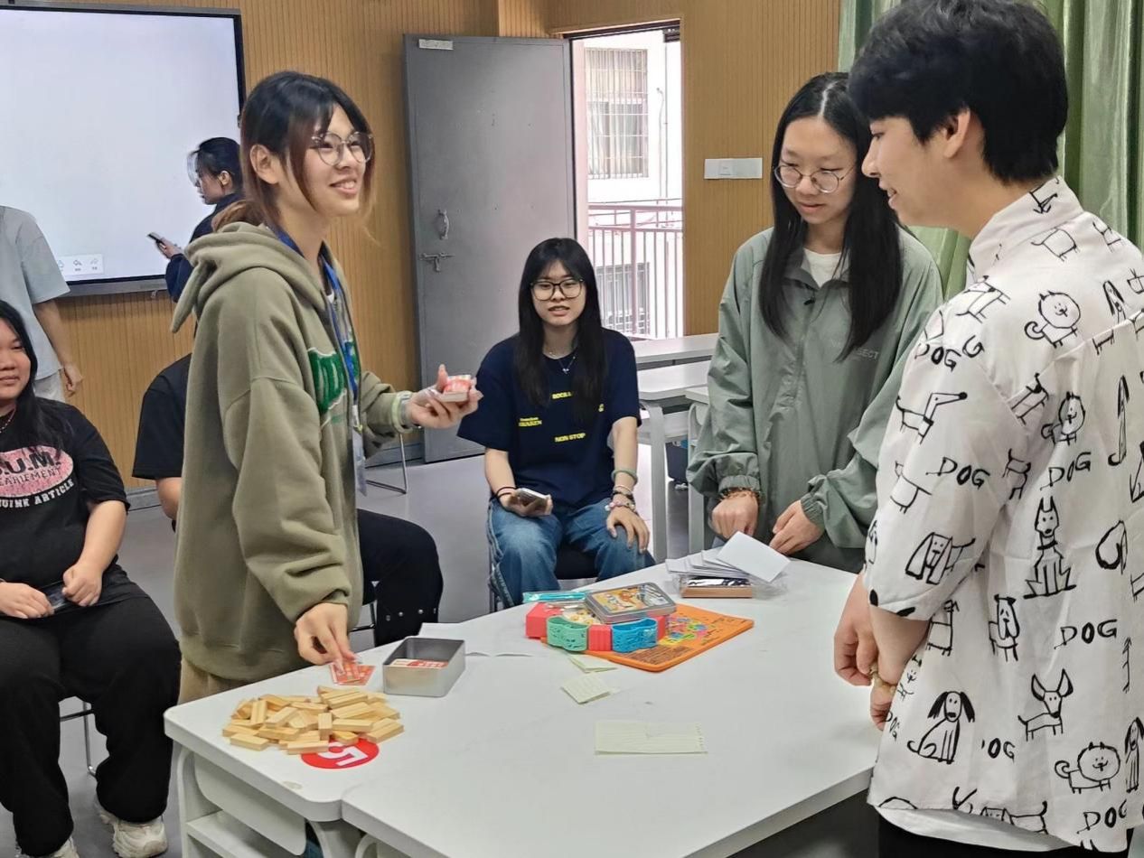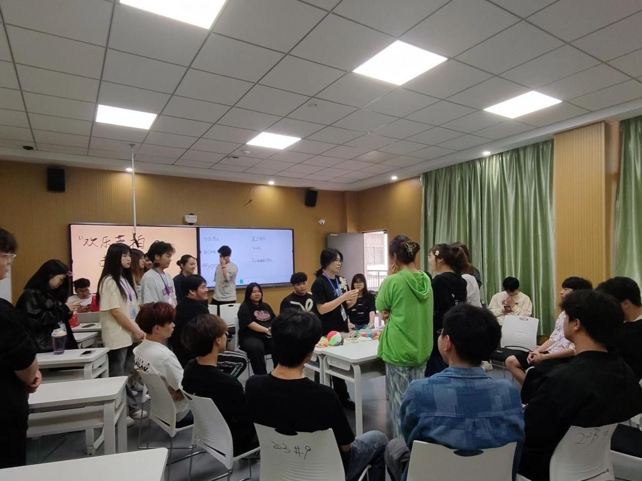 随着鼓声响起,大家开始迅速传递花束,而当鼓声暂停时,手中持有花束的参与者需要完成一项有趣的任务,包括即兴表演、知识问答、趣味钓鱼,拼图等小游戏活动现场气氛热烈掌声此起彼伏同学们乐在其中