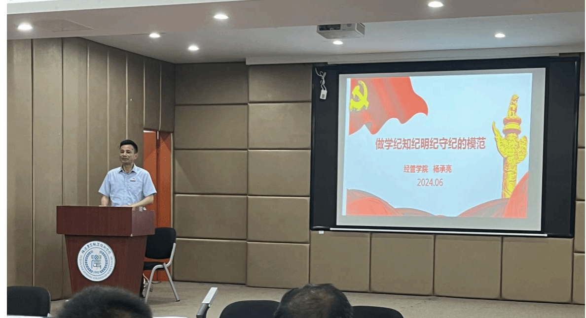 随后,党总支书记杨承亮同志围绕“党员干部如何做遵纪守纪的模范,以身作则打造风清气正干事创业环境,推动党纪学习教育走深走实、见行见效”为大家上了一堂名为《做学纪知纪明纪守纪的模范》专题党课。