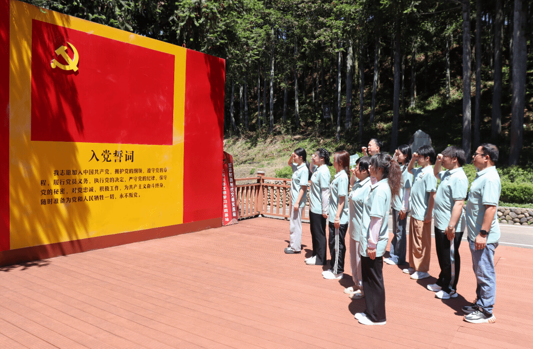 周宁县是“三库+碳库”重要理念和习近平生态文明思想的重要萌发地和先行实践地。在黄振芳家庭林场展馆和“三库” 生态文明实践主题展馆,实践队一行重温习近平总书记“三赴林场、九赴周宁”的故事,在案例与实物展示中领悟“三库”绿色生态理念的核心内涵,进行习近平生态文明思想的理论溯源,感悟黄振芳三代人的林业传承精神,了解周宁坚持“逐绿创收”的重要举措。在“森林党校”,思政指导老师王英教授深入讲解了“三库+碳库”的理论知识,引领实践队成员深刻领悟并积极践行“绿水青山就是金山银山”的生态文明理念。最后,在“三棵树”学习基地,实践队全体党员面向党旗高举右拳重温入党誓词。