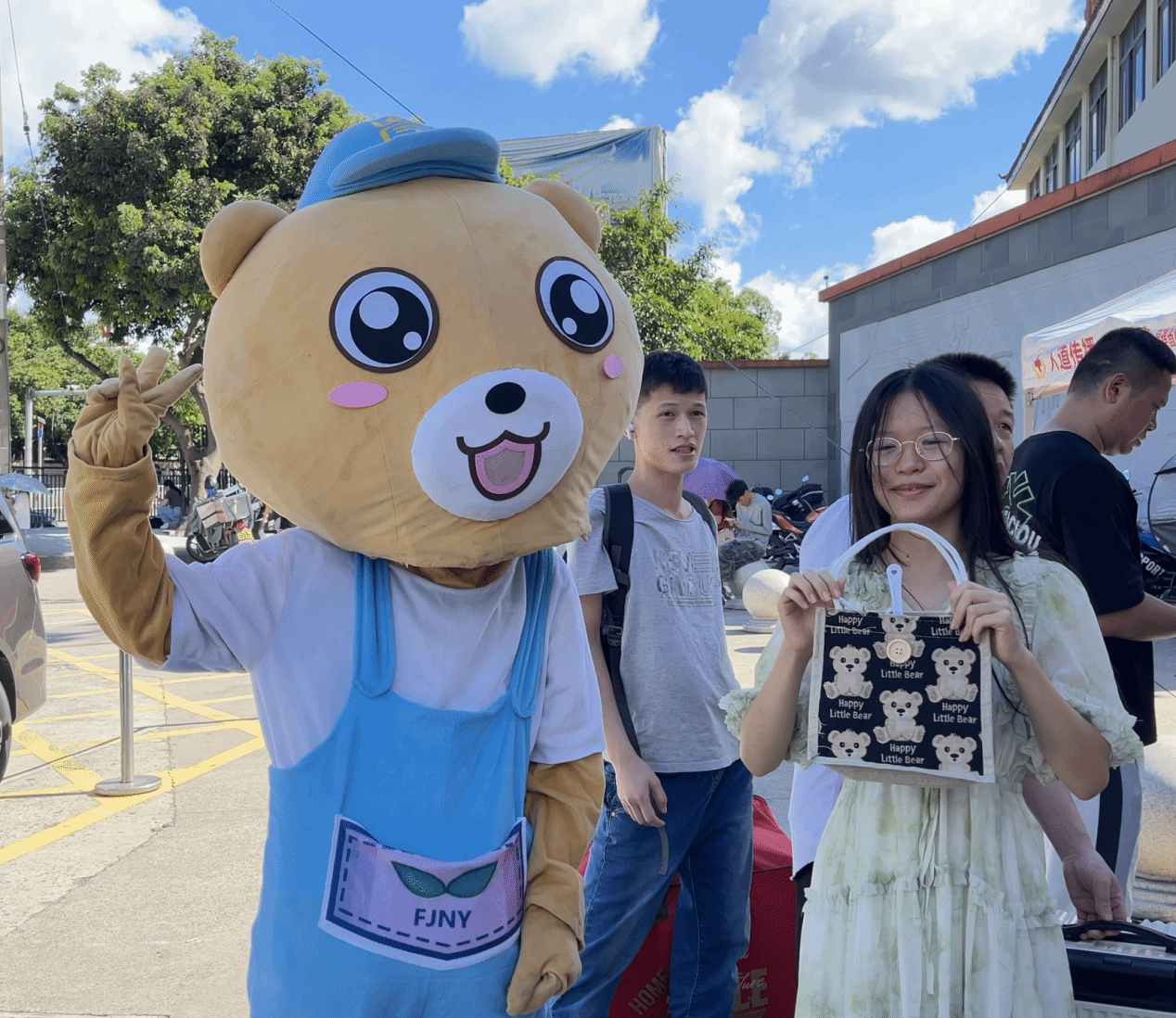 新生们来到校园各处打卡点